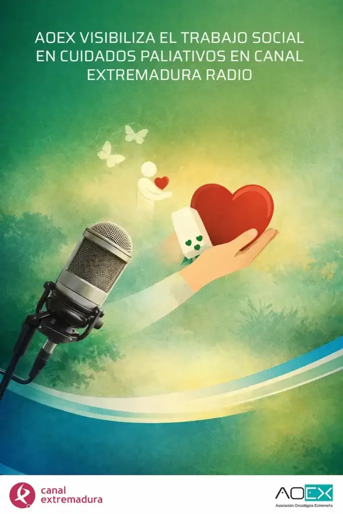 En la entrevista intervinieron Raquel Cano Sánchez, Directora Técnica y Coordinadora de Trabajo Social de AOEx, junto a Jéssica González Sánchez, trabajadora social en los Equipos de Atención Psicosocial (EAPS) de Cuidados Paliativos Mérida-Don Benito-Villanueva, y Gloria Cabanillas Viñuela, trabajadora social en los EAPS de Cuidados Paliativos Badajoz-Llerena-Zafra.