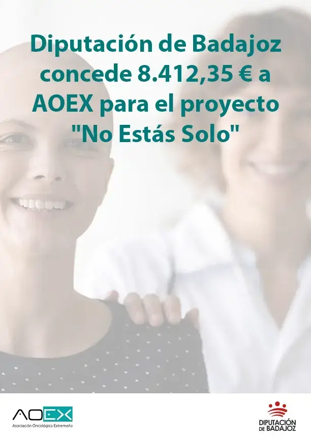 La Diputación de Badajoz ha otorgado una ayuda de 8.412,35 euros a la Asociación Oncológica Extremeña (AOEX) para el proyecto «No Estás Sol@”. Este
